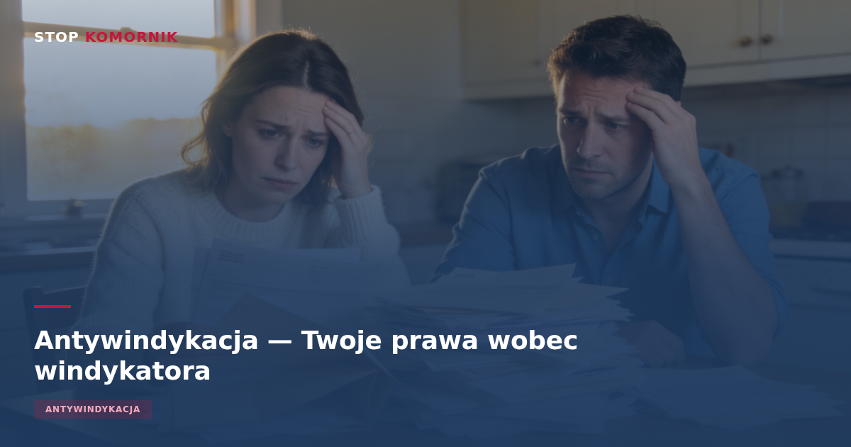 Antywindykacja to zestaw legalnych metod obrony przed agresywnymi dzialaniami firm windykacyjnych. Obejmuje znajomosc swoich praw, umiejetnosc odpowiadania na wezwania do zaplaty i wiedze o tym, czego windykator NIE moze robic. W Stop Komornik pomagamy naszym klientom skutecznie chronic sie przed nieetyczna windykacja.